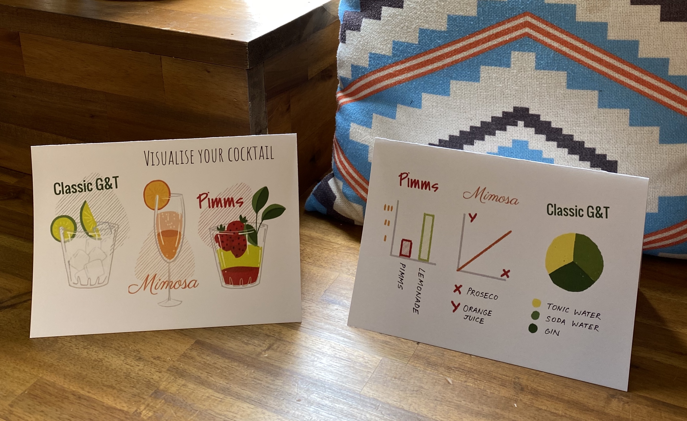 Infographic of cocktail recipes using charts, made for a work event focused on the importance of data visualisation and storytelling.
